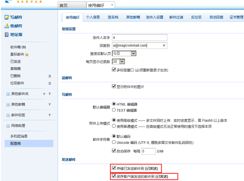 首先,网页发信时,必须选择以下的选项以便保存已发出的邮件到【已发送】中